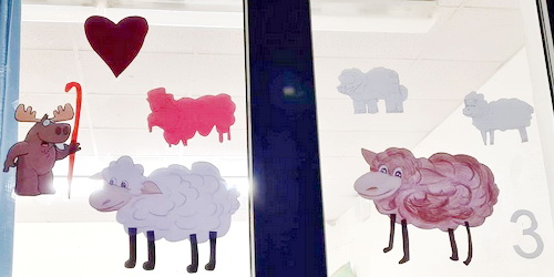 Knut der Elch trifft auf Schafe, erst eins, dann ganz viele, die alle durcheinander blöken. „Man versteht ja gar nichts“ sagt er zu sich selbst – aber auch sich selbst kann er so nicht hören. „Macht nichts“, denkt er sich, „ich will ja nicht auf die Schafe hören, sondern auf mein Herz. Man hört nur mit dem Herzen gut!“ Oh, den Satz sollte man sich mal merken. Ob der auch für die Augen gilt?